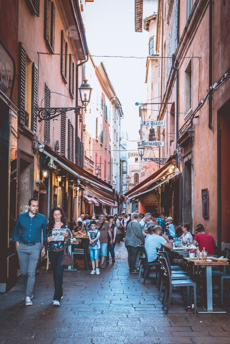 In this photo essay, I tried to capture the cheerful and refreshing spirit of Bologna, and to do so I chose to focus on its dynamic and ever-changing force – people. The lovely, sunny and warm day was perfect for al fresco eating, making for no shortage of appropriate sceneries. However I must admit to still be very much (too much) shy, I need to learn to get closer to the people I want to photograph. It’s a skill that I’m working on, and that – I know I know – requires so much practice. As well as self-confidence. Along with that, the other challenge here was about timing: I had in fact just half a day to savour the place and to decide which aspect of the city I wanted to capture. That is another expertise that comes only with countless attempts. And in fact in my mind always resonates what Martin Parr once said: “Photography is the simplest thing in the world, but it is incredibly complicated to make it really work”.